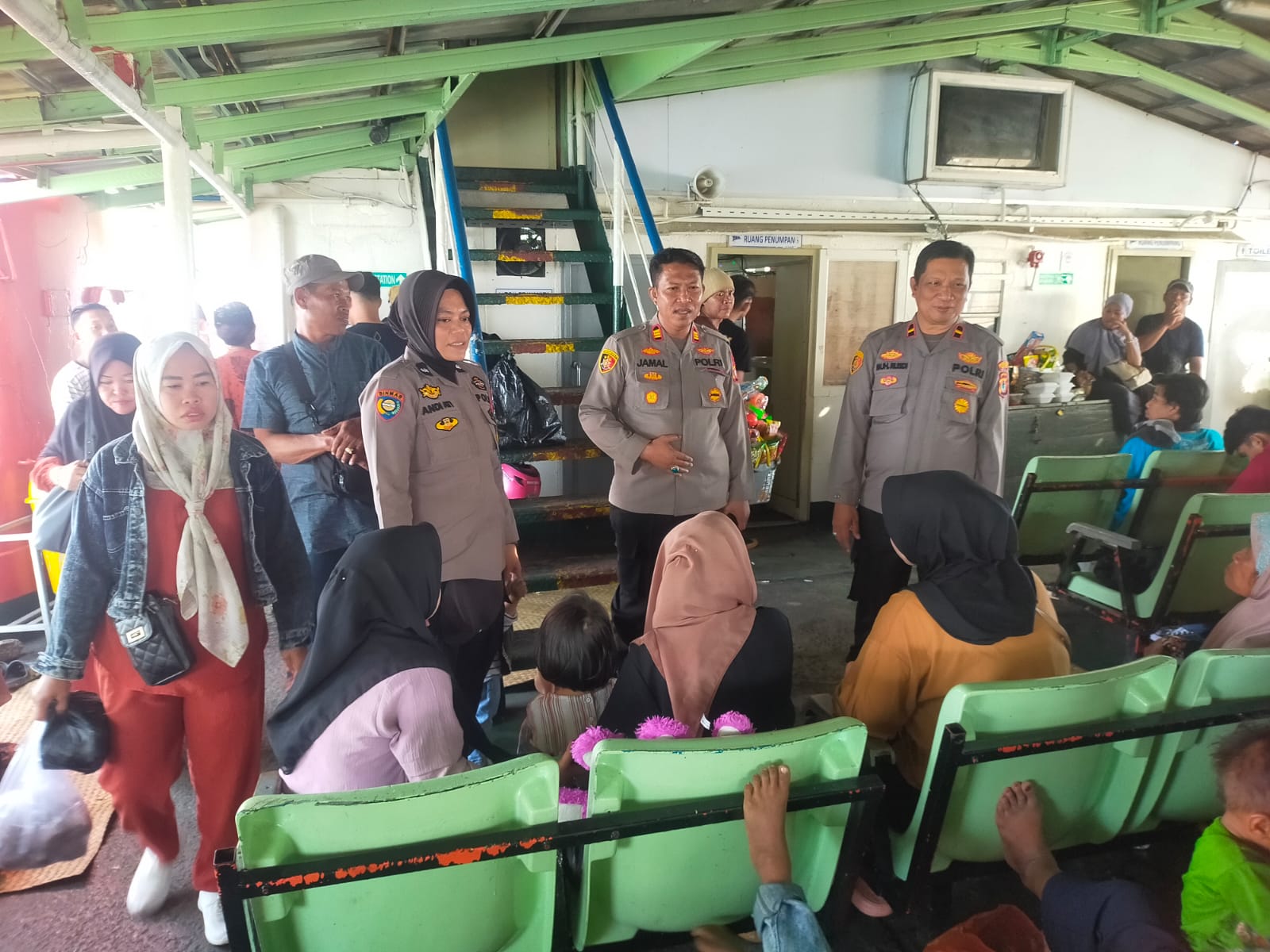 Kapolsek Kawasan Pelabuhan Bajoe Polres Bone AKP JAMALUDDIN, SH didampingi oleh Waka Polsek Kawasan Pelabuhan Bajie Polres Bone Ipda Muh. Rusdi A.Md., SH dan Kanit Binmas Aipda Andi Akhriati Nur berada di Kapal Ferry KOTABUMI sesaat sebelum berangkat ke Pelabuhan Kolaka Sulawesi Tenggara.