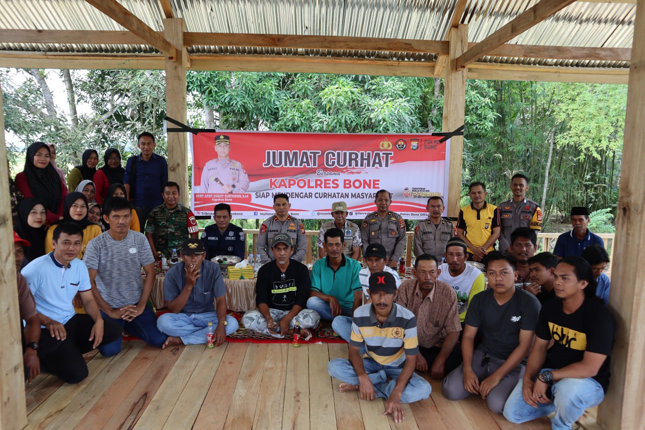 Program Jum’at Curhat polres Bone Kabag OPS Polres Bone Kompol Andi MUH.Syafei,S,sos,MH didampingi Kabag Sumda Polres Bone Kompol H.Risal S.H, Kasubag Binkar SDM Polres Bone H.Rusyan , Kasubsi PIDM Sihumas IPTU Rayendra Muhatar SH, Paur Subbang Dal Ops Iptu Mustafa , bersama Lurah Apala , Bhabinkamtibmas, Bripka Lasuardi ,Bhabinsa Maman Suryaman, tokoh pemuda ,tokoh agama Desa Apala Kecamatan Barebbo .