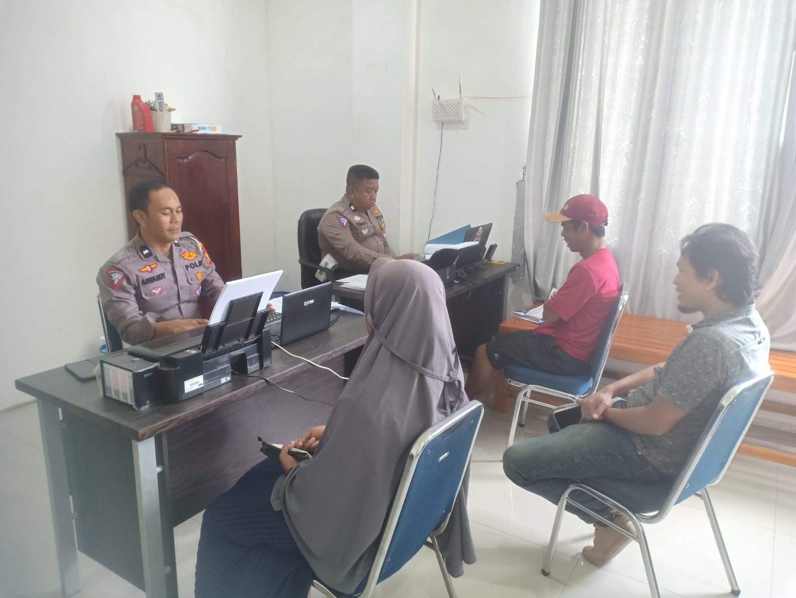 Seperti yang terpantau di ruangan unit Gakkum Sat Lantas Polres Bone. Selaku Penyidik, Aswandy dan Aiptu Edianto memberikan pelayanan kepada masyarakat yang membutuhkan surat rekomendasi asuransi jasa raharja.