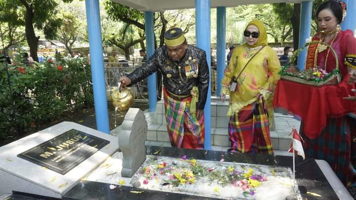 Masih dalam Rangkaian Hari Jadi Bone Ke-693. Pemerintah Daerah Kabupaten Bone Menggelar Ziarah Makam Raja Bone Ke-15 Arung Palakka Petta Malampe’e Gemme’ na, To’ Appatunru Paduka Sri Sultan Sa’ad ud-din Matinroe Ri Bontoala Jl. Bonto Biraeng, Katangka, Kecamatan Somba Opu, Kabupaten Gowa, Rabu 15/03/ 2023.