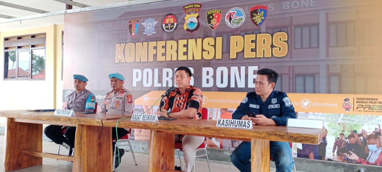 Polres Bone adakan konferensi pers terkait penetapan tersangka terhadap oknum anggota polres Bone yang bertugas di Polsek patimpeng.