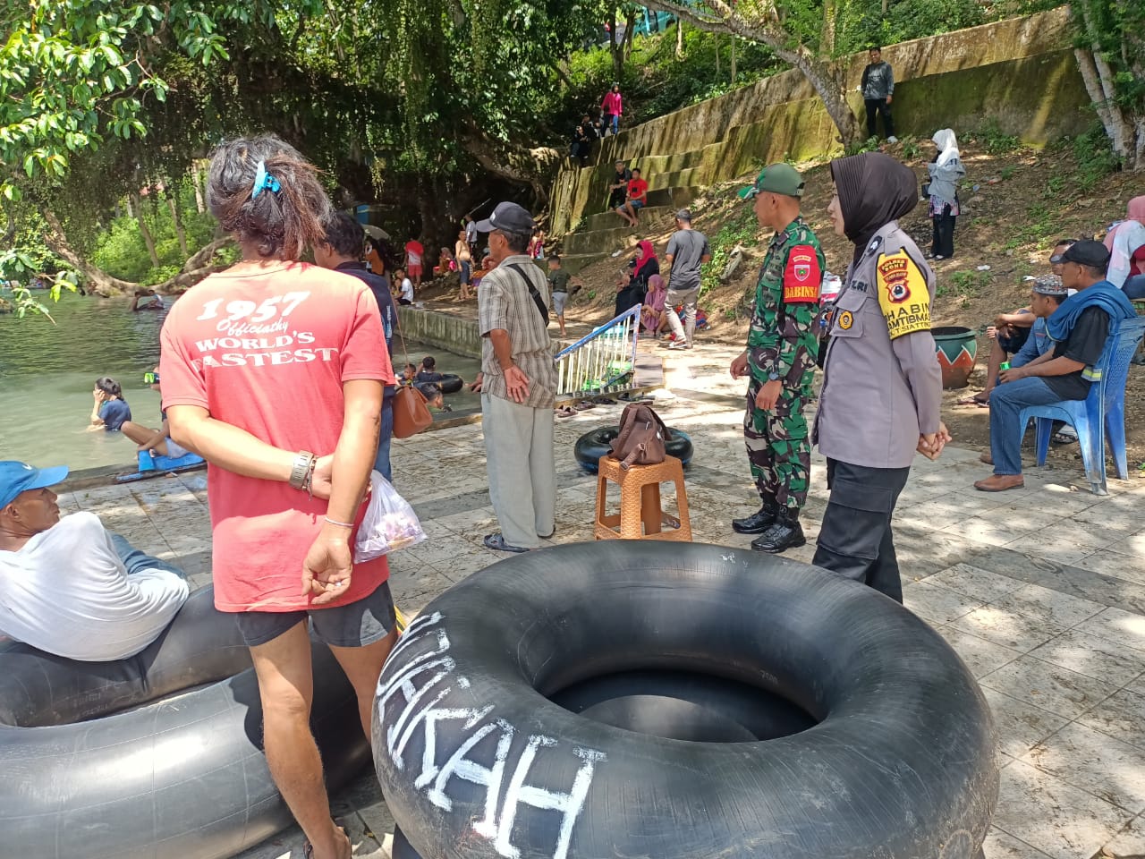 BONE – Tellu Siattinge, Demi terciptanya situasi kamtibmas yang stabil, Bhabinkamtibmas Polsek Tellu Siattinge Polres Bone, Briptu Citra Demmu, memantau langsung aktivitas masyarakat di salah satu objek wisata permandian Lanca.