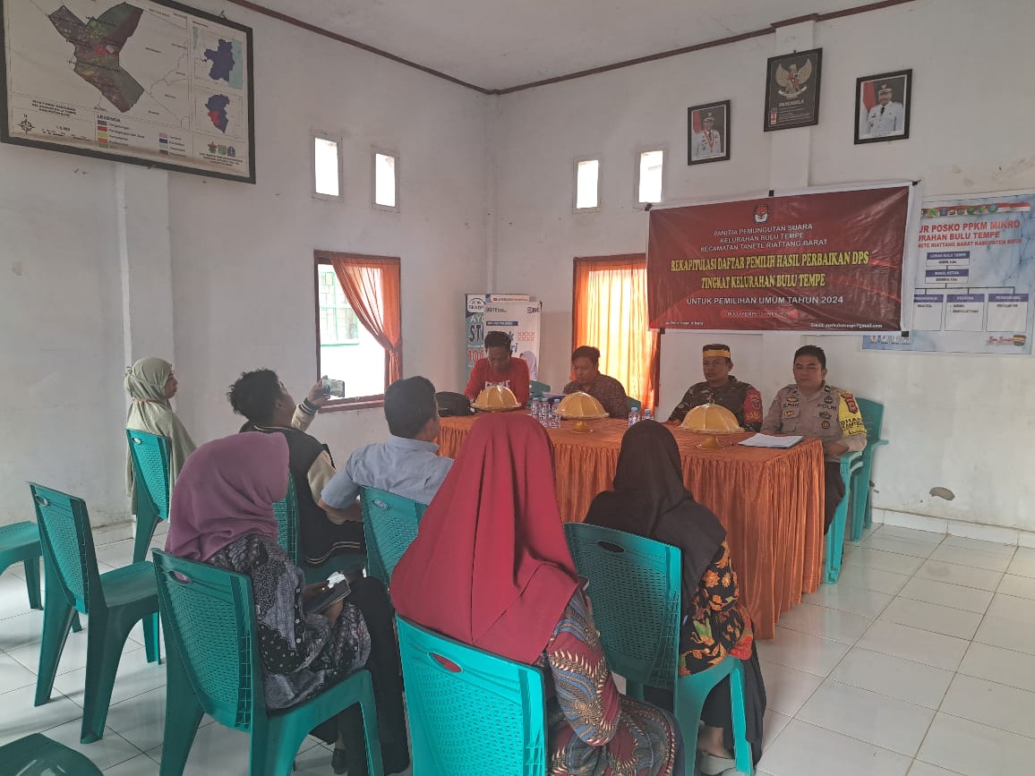 Kegiatan tersebut dihadiri KPPS Kelurahan Bulu Tempe Andi Sandi Nursam Saputra, S.Pd, Andi Irwan S. Sos (Kasi Trantib Bulu Tempe) Aipda Ulpiadi (Bhabinkamtibmas Bulu Tempe) Serda La Obo (Babinsa Bulu Tempe) dan tokoh masyarakat Bulu Tempe.