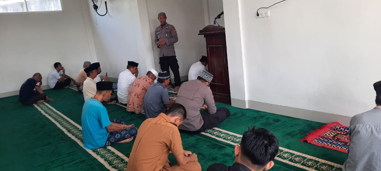 Setelah melaksanakan sholat dhuhur secara berjamaah Kanit Bintibsos Aiptu Muh. Anas. S.Pd.I. menyampaikan pesan – pesan Kamtibmas serta tausyiah islamia mengenai situasi kamtibmas sekarang ini serta kewajiban manusia sebagai hamba Allah Swt.