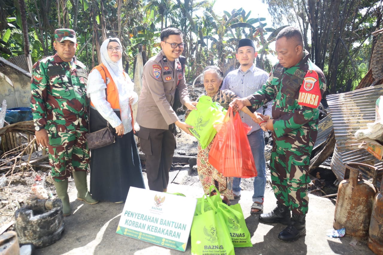 Kanit Bhabinkamtibmas Polres Bone Dampingi Baznas Bone Salurkan Bantuan untuk Korban Kebakaran