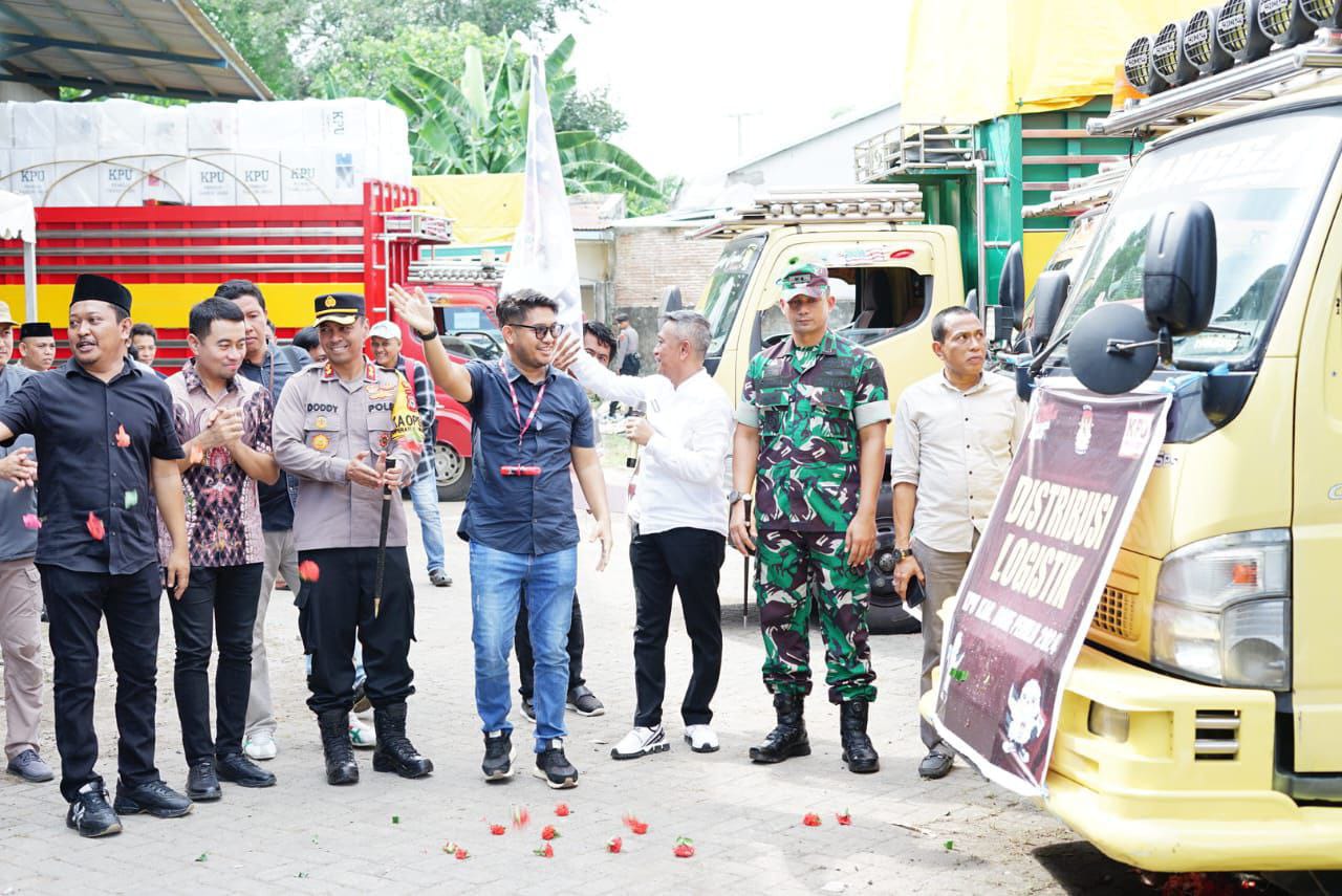 Sebanyak 9 mobil truk bak terbuka digunakan untuk mengangkut logistik Pemilu, yang diawasi secara ketat oleh personel kepolisian. Setiap mobil truk membawa kotak suara yang akan didistribusikan ke tiap-tiap kecamatan (PPK) sesuai dengan jumlah Tempat Pemungutan Suara (TPS) per kecamatan.