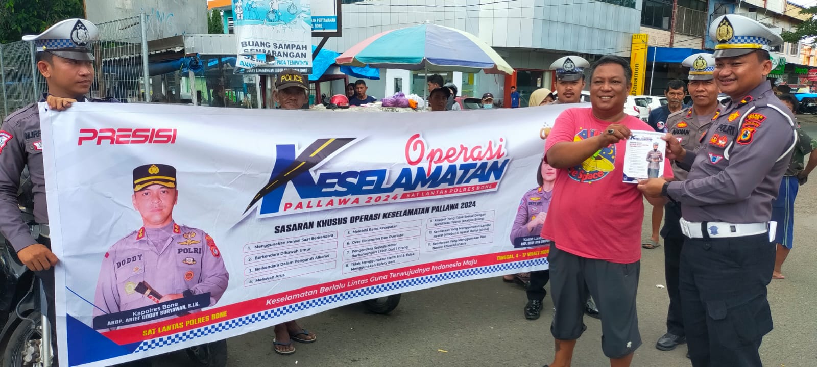 Kapolres Bone AKBP Arief Doddy Suryawan melalui Kasat Lantas AKP Desy Ayu Dwi Putri mengatakan pasar dijadikan sebagai salah satu sasaran operasi Keselamatan Pallawa 2024 karena merupakan aktivitas padatnya masyarakat.