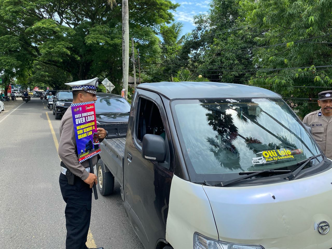 Di hari kesepuluh ops keselamatan pallawa 2025, personel Satlantas kembali turun ke jalan melaksanakan sosialisasi sebarkan stiker dan brosur berisi informasi 11 pelanggaran prioritas.