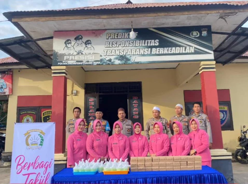 BONE – Patimpeng, Senin sore 24/03/2025 Pkl 17.30 wita personil Polsek Patimpeng Polres Bone bersama Bhayangkari Ranting Patimpeng melaksanakan kegiatan bagi takjil.