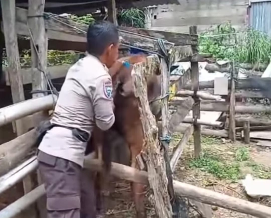BONE – Libureng, Uapaya mendukung ketahanan pangan dan meningkatkan kesejahteraan masyarakat, Aiptu Arifuddin, S.Sos personel Polsek Libureng Polres Bone terjun langsung membantu warga melakukan inseminasi buatan, Sabtu 26 April 2025.