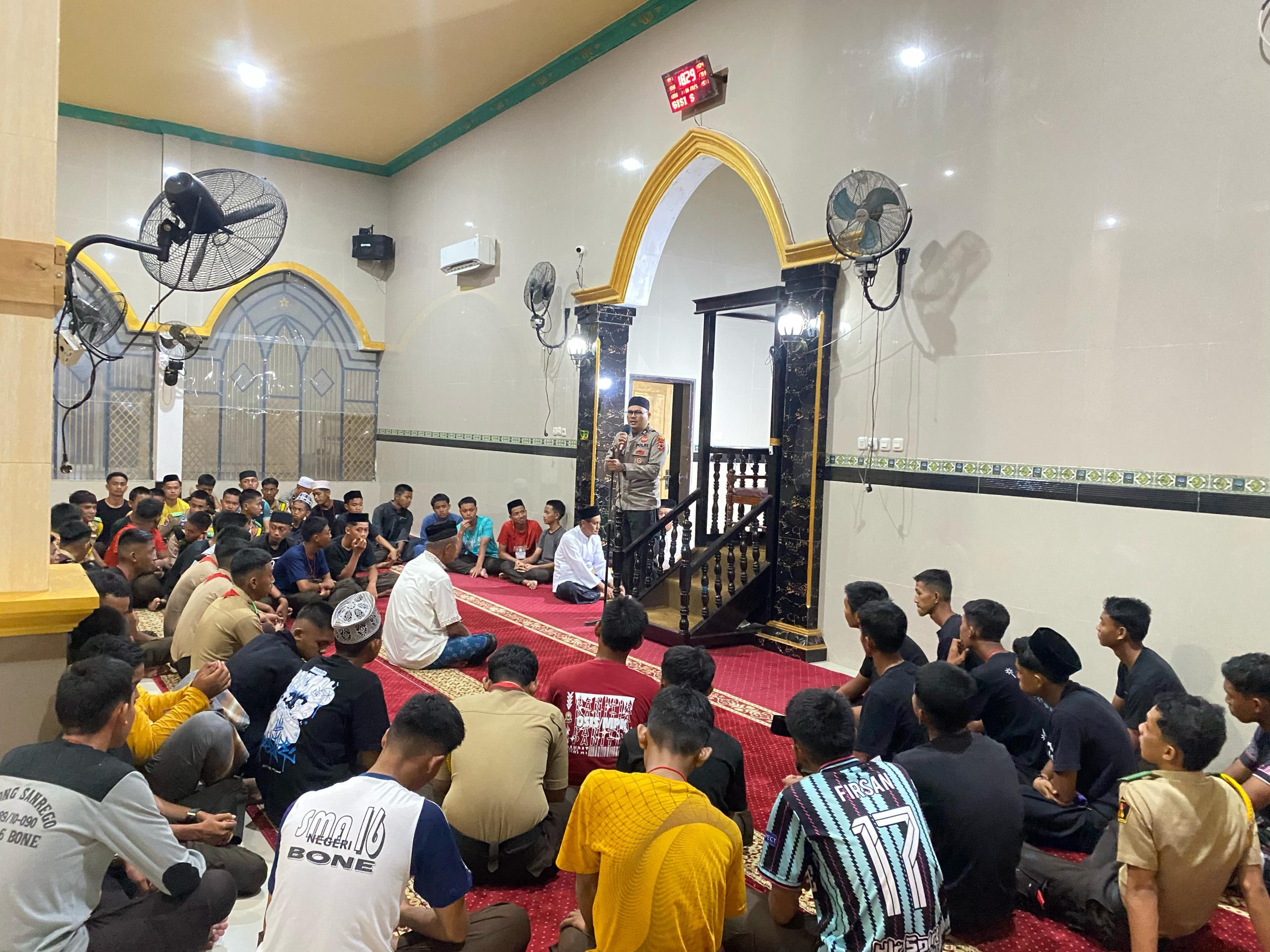 BONE – Setelah pelaksanaan Salat Magrib, bertempat di Masjid Miftahul Khair, Kelurahan Mattirowalie, Kecamatan Tanete Riattang Barat, Kabupaten Bone, berlangsung kegiatan ceramah agama yang disampaikan oleh Kanit Binpolmas Sat Binmas Polres Bone, AIPTU Muh. Anas P., S.H. (11 Juni 2025).
