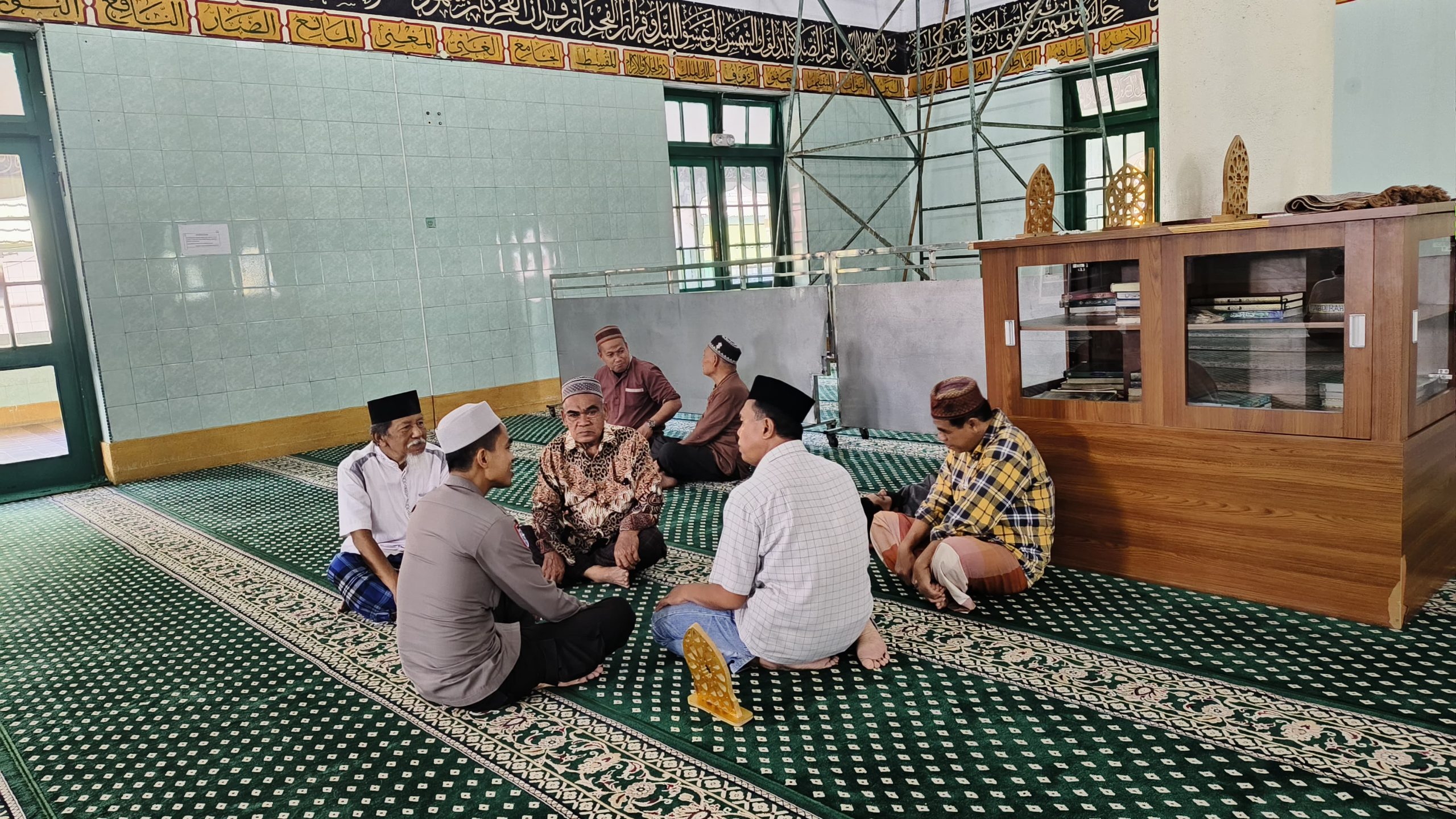 BONE — Kanit Binkamsa Sat Binmas Polres Bone, IPDA Agus Salim, melaksanakan koordinasi dengan pengurus Masjid Raya Watampone terkait rencana pelaksanaan kegiatan bakti religi. Pertemuan ini berlangsung di dalam Masjid Raya Watampone yang terletak di Kelurahan Bukaka, Kecamatan Tanete Riattang, Kabupaten Bone. (11 Juni 2025 )