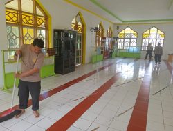 Bersama dengan warga, terlihat para personil Polsek Tellu Limpoe, bahu membahu dengan warga yang lain untuk membantu membersihakan Masjid. Dengan kekompakan ini tidak membutuhkan waktu lama kondisi dilingkungan masjid menjadi lebih bersih dan nyaman untuk beribadah.