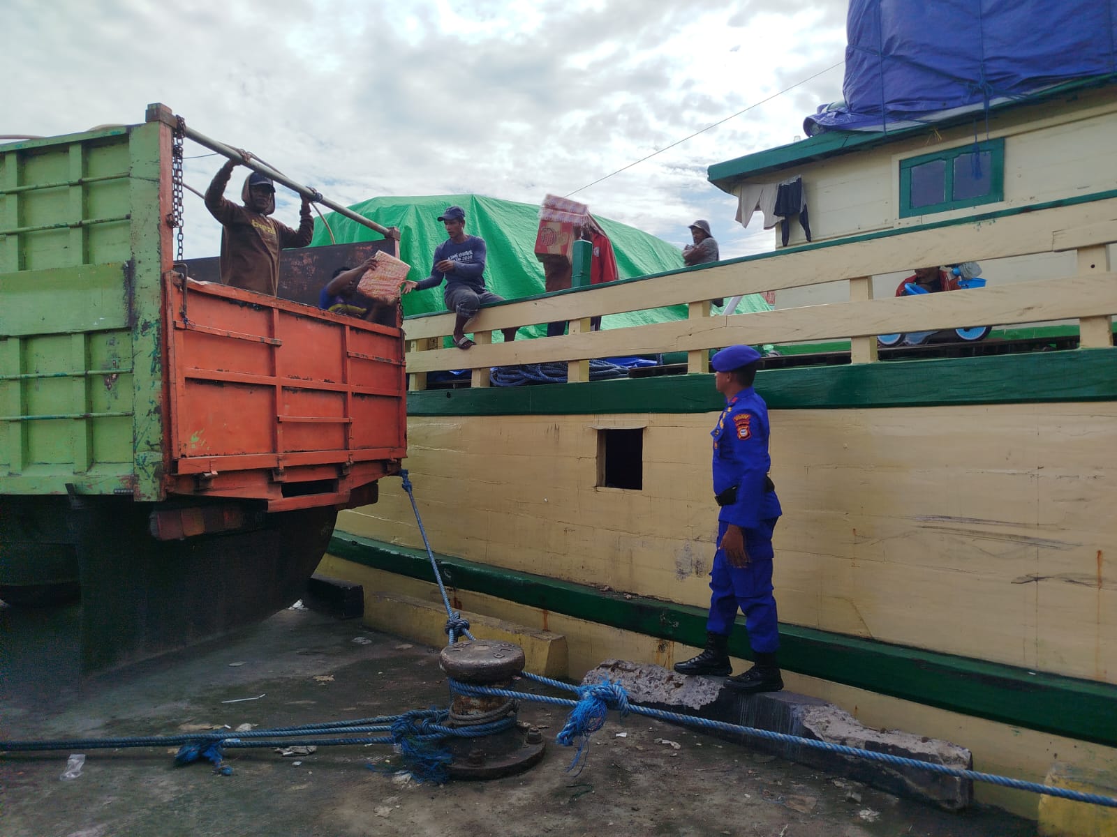“Untuk memberikan rasa aman dan nyaman kepada warga masyarakat yang berkepentingan ketika sedang berlangsungnya aktivitas masyarakat yaitu proses bongkar muat barang dari mobil ke kapal,” jelas Brgpol Aryo.