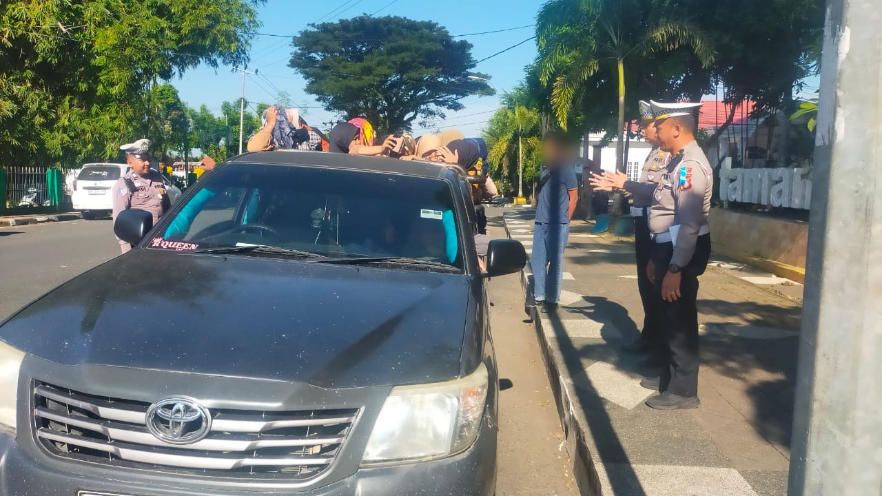BONE – Satlantas Polres Bone menindak tegas sejumlah kendaraan roda empat jenis pick up yang kedapatan mengangkut penumpang, saat pelaksanaan Ops Patuh Pallawa 2025 hari keenam di sejumlah ruas jalan protokol di Kota Watampone, Kabupaten Bone, Sabtu (19/7/2025) kemarin.