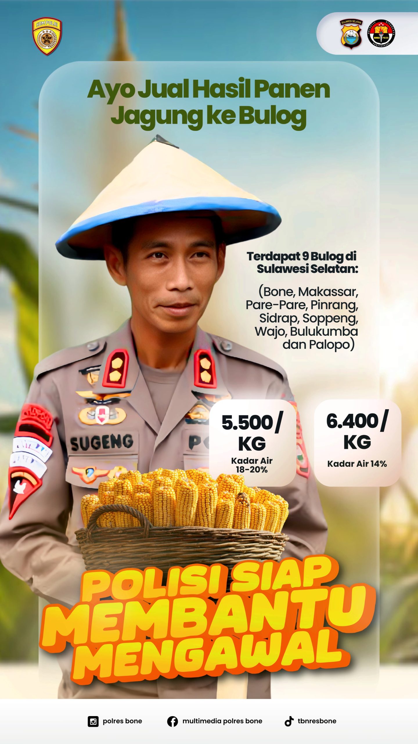 BONE – Kepolisian Resor (Polres) Bone melalui Kabag SDM Kompol Arsyad menyampaikan imbauan penting dari Kapolres Bone AKBP Sugeng Setio Budhi, S.IK., M.Tr.Opsla. Imbauan ini ditujukan kepada seluruh petani jagung di wilayah Sulawesi Selatan, khususnya di Kabupaten Bone, terkait program pembelian jagung oleh Pemerintah melalui Perum Bulog.