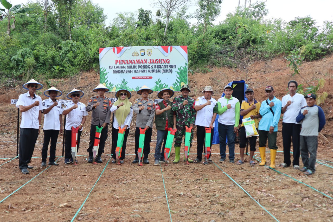 Acara dibuka dengan pembacaan doa oleh Bripda Andi Muhammad Al Khuzairi dan dilanjutkan dengan penanaman jagung secara simbolis oleh para tamu undangan. Adapun lahan yang ditanami merupakan milik pondok pesantren seluas ±1 hektare yang dikelola bersama para santri dan kelompok tani. Bibit jagung yang digunakan sebanyak 10 kg, dengan estimasi panen dalam waktu 4 bulan ke depan.