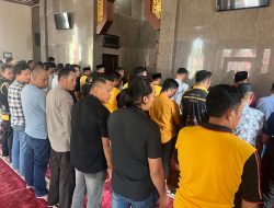 BONE – Jajaran Polres Bone menggelar Shalat Ghoib dan doa bersama atas gugurnya salah satu pengemudi ojek online, almarhum Affan Kurniawan, pada Jumat (29/8/2025) sekitar pukul 13.00 Wita. Kegiatan ini berlangsung di Masjid Qadrul Islam Polres Bone dan dipimpin oleh Imam Masjid, Ustadz Al Hafidz Nizar Darwis.