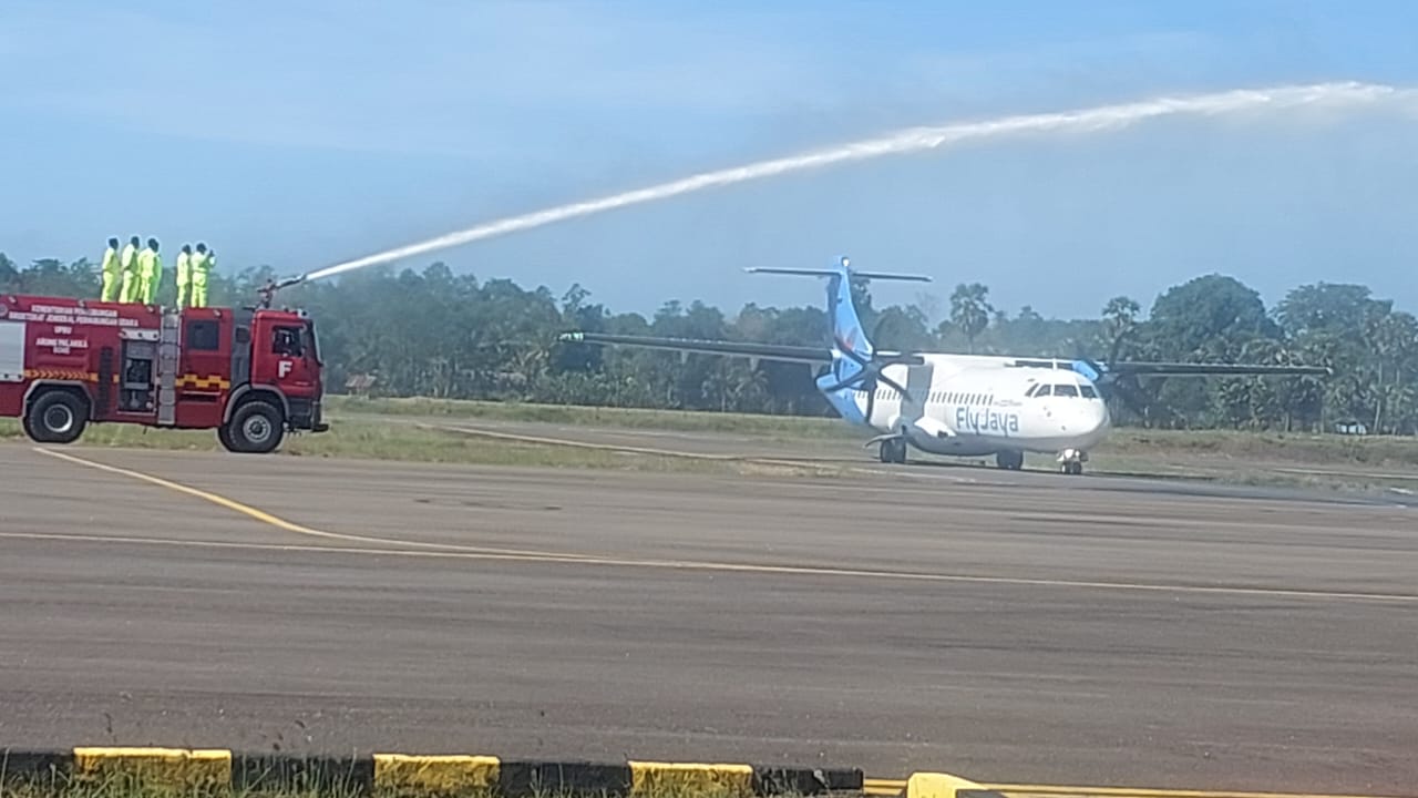 BONE – Pada hari Sabtu, 13 September 2025, Kapolsek Awangpone Polres Bone AKP Supriyadi, S.Sos., menghadiri kegiatan Launching Penerbangan Bersubsidi di Bandara Arung Palakka, Desa Mappalo Ulaweng, Kecamatan Awangpone, Kabupaten Bone. Momentum ini ditandai dengan pendaratan perdana pesawat Fly Jaya dengan registrasi PK-FJA OR OTHER yang melakukan penerbangan dari Bandar Udara Internasional Sultan Hasanuddin Makassar. Pesawat tersebut lepas landas pada pukul 14.00 WITA dan tiba dengan lancar di Bandara Arung Palakka Bone pada pukul 14.30 WITA. Penerbangan ini sekaligus menjadi tanda dimulainya operasional layanan penerbangan bersubsidi yang diharapkan dapat mendukung mobilitas masyarakat dan meningkatkan akses transportasi di wilayah Kabupaten Bone dan sekitarnya.