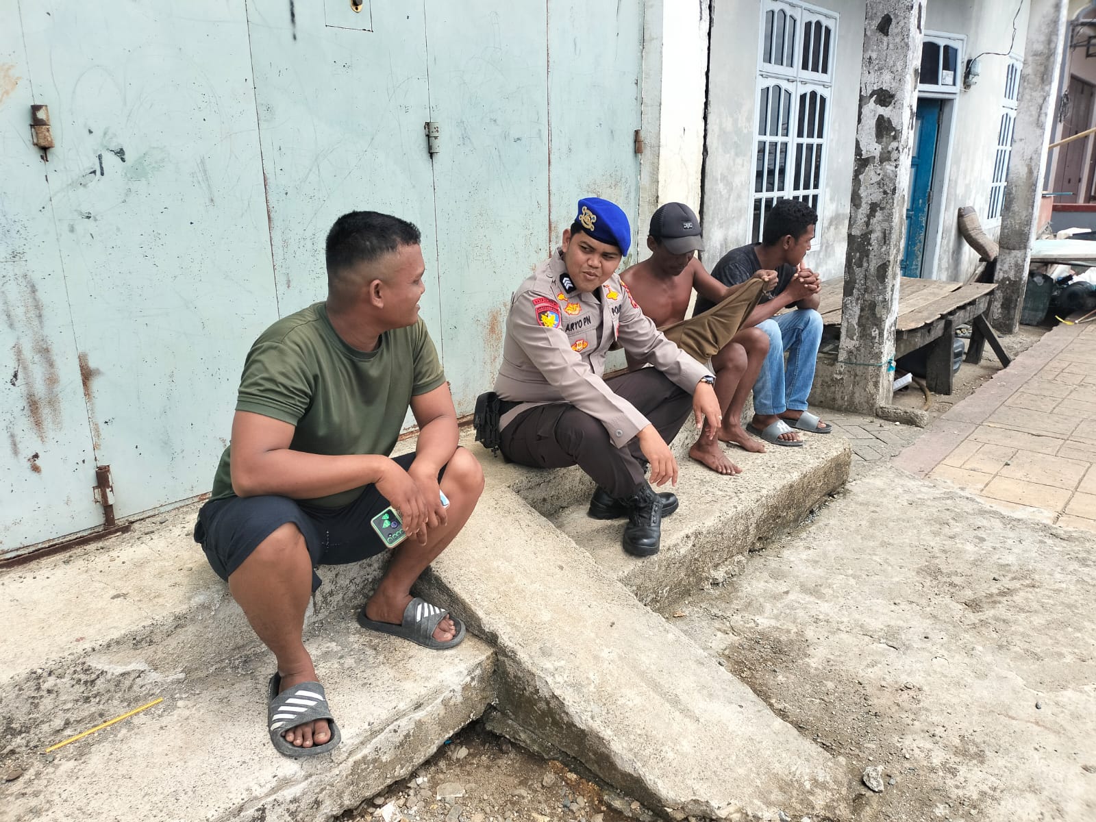 Disela kegiatannya, Brigpol Aryo berbicang-bincang dengan masyarakat dan menyampaikan beberapa himbauan terkait kamtibmas.
