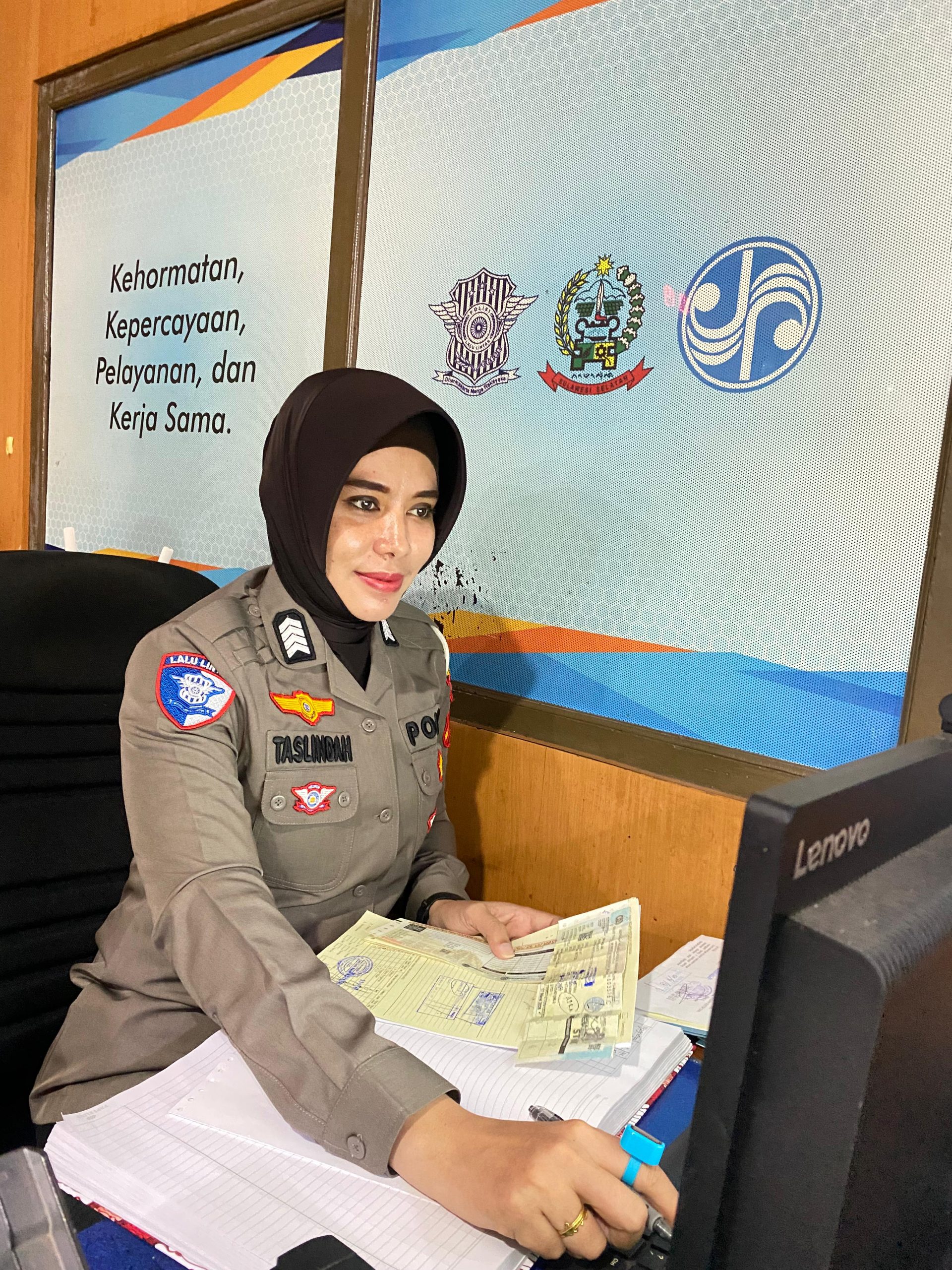 Tak sekadar melayani administrasi, personel Satlantas juga aktif memeriksa kelengkapan berkas sesuai dengan SOP, serta memberikan arahan agar para wajib pajak tidak kesulitan dalam mengisi formulir.