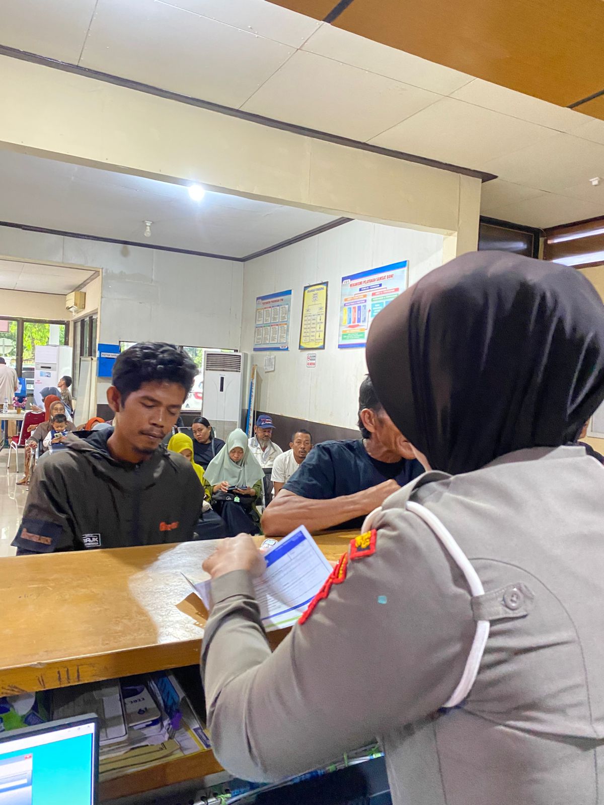 Sejumlah warga tampak sedang berinteraksi langsung dengan personel di loket pelayanan. Personel terlihat sedang memproses dokumen dengan teliti dan penuh tanggung jawab.