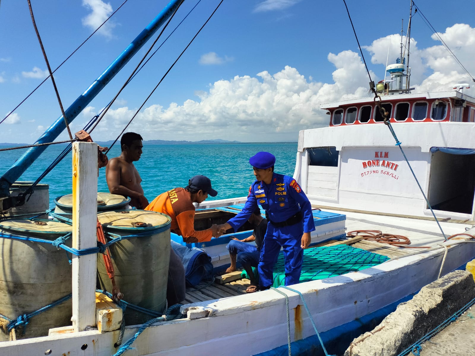 Satpolairud Polres Bone Sambangi Nahkoda dan ABK, Ini Himbauan yang Disampaikan