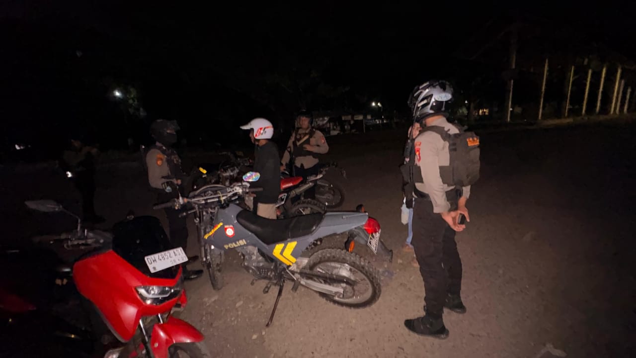 BONE – Dalam upaya untuk mengantisipasi balapan liar dan kejahatan pada malam hari di kota Watampone, sejumlah personil Sat Samapta Polres Bone laksankan patroli KRYD dan berikan himbauan kamtibmas ke masyarakat yang di temui, Upaya ini bertujuan untuk menjaga keamanan dan ketertiban di kota watampone, khususnya pada malam hari, Senin (17/11/2025) malam.