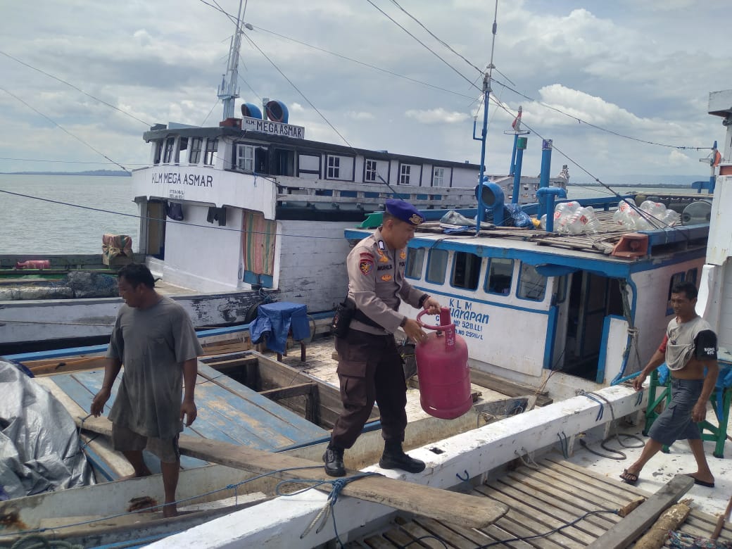 Melalui program Polisi Penolong, personel Satpolairud Bripka Muhlis terlihat membantu mengangkat barang dari mobil untuk dinaikkan keatas kapal.