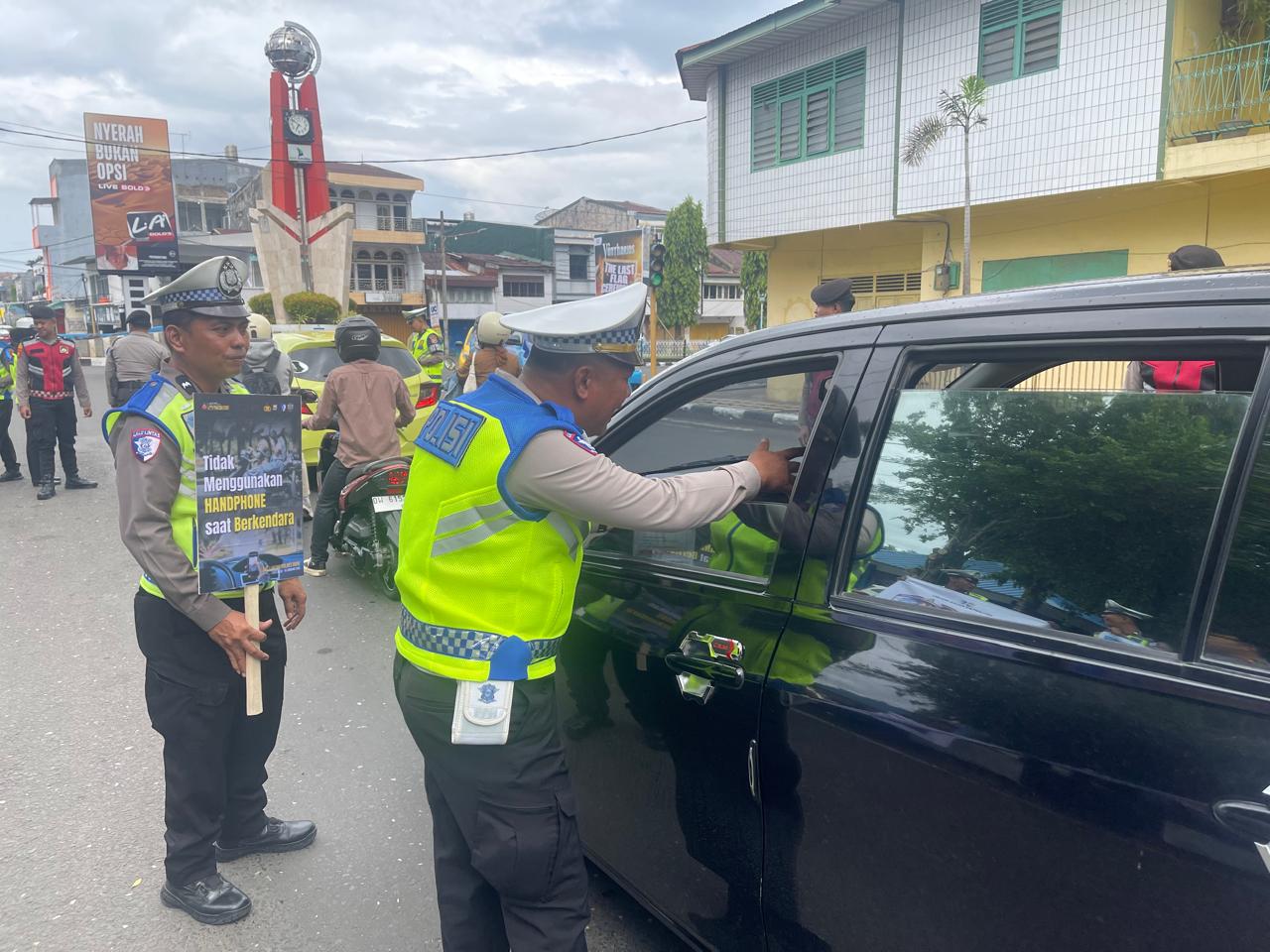 Dalam sosialisasi yang dilakukan, personel juga berinteraksi langsung dengan masyarakat, memberikan penjelasan dan edukasi mengenai peraturan lalu lintas.