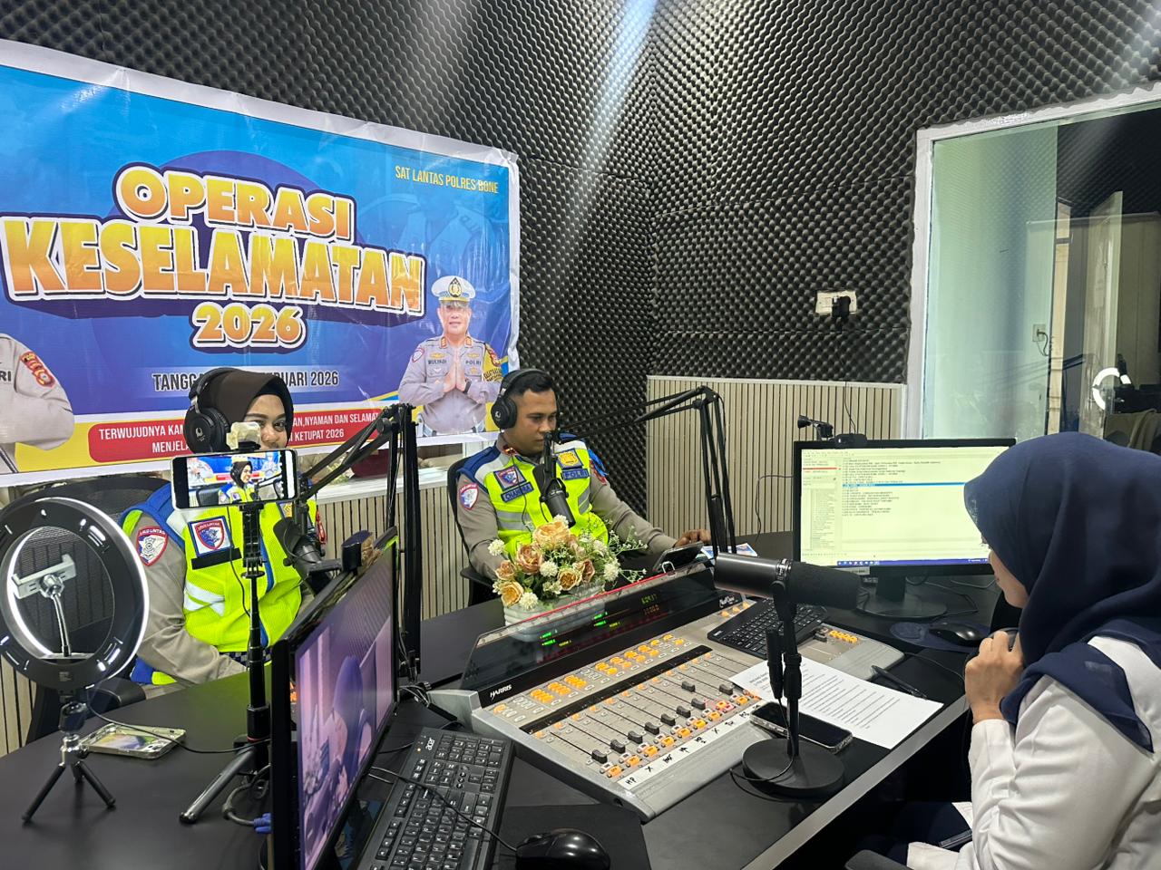 Dihari pertama, Operasi Keselamatan Pallawa 2026 Satlantas Polres Bone kembali diwarnai dengan kegiatan sosialisasi yang disampaikan melalui siaran langsung radio di RRI BONE.