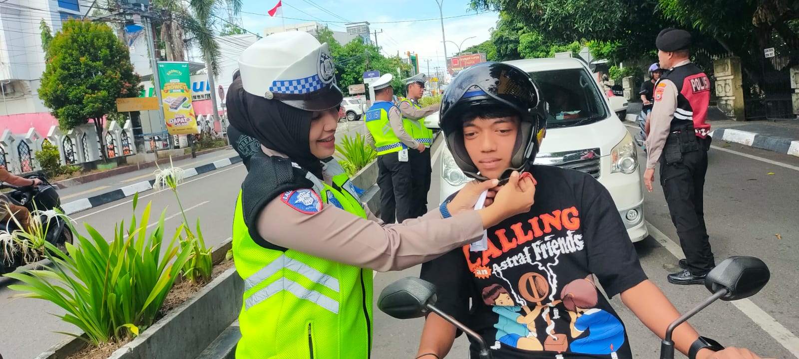 “Kita juga turut mengedukasi untuk mengikat tali helm saat berkendara demi keselamatan dijalan, begitu juga kepada pengemudi roda empat supaya selalu menggunakan sabuk keselamatan,” sambungnya.