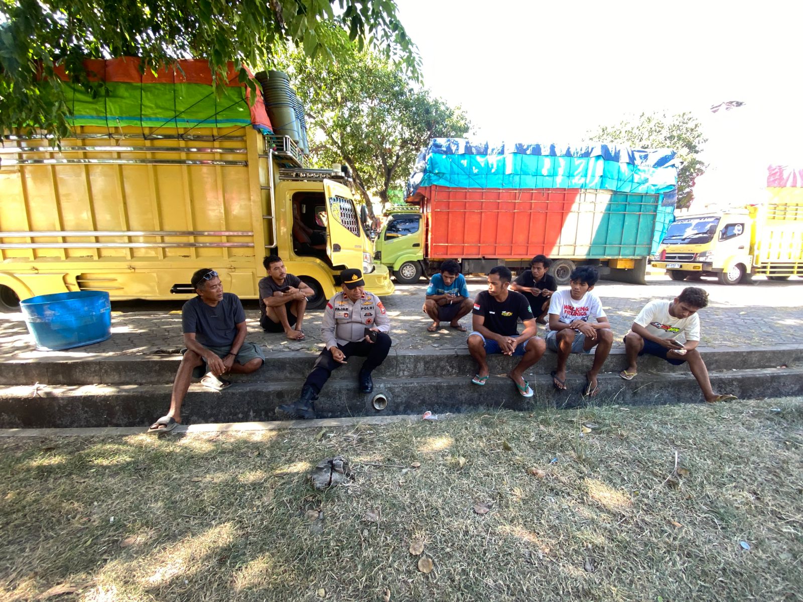 Yang kali ini dilakukan dengan menemui beberapa sopir truck yang sedang duduk menunggu kepastian keberangkatan. Sekaligus memberikan pesan Kamtibmas untuk tidak melakukan hal hal yang dapat memicu kributan. Ungkpanya.
