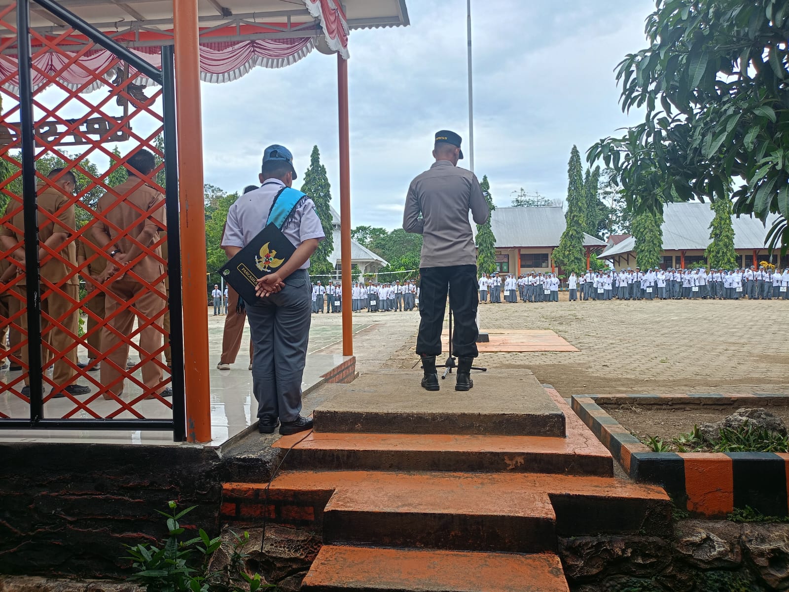 Kapolsek Awangpone Jadi Pembina Upacara di SMAN 16 Bone Sosialisasikan Ops Keselamatan Pallawa 2026