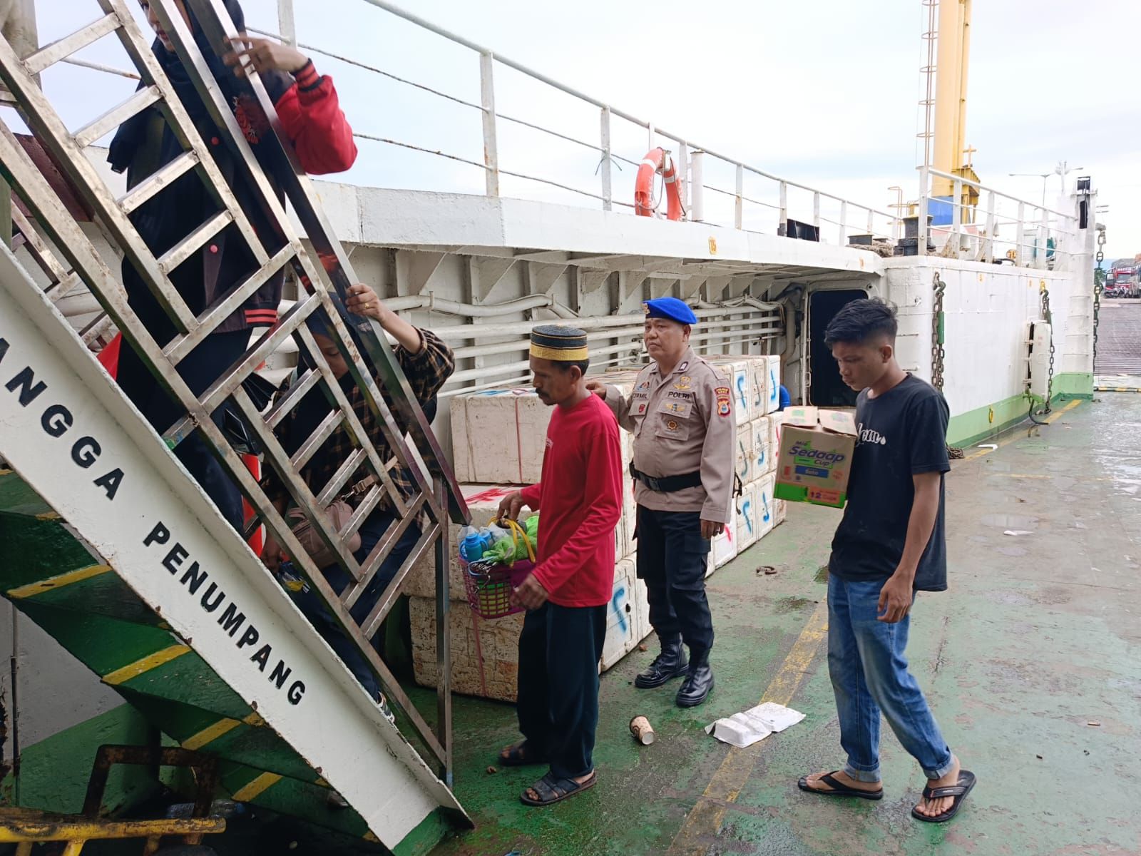 Selain pengamanan, Aipda Muh. Jamil bersama anggotanya juga memberikan himbauan terkait keselamatan diatas kapal.