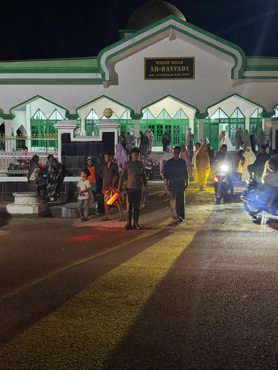 BONE – Dalam rangka memberikan rasa aman dan nyaman kepada masyarakat selama bulan suci Ramadan, tahun 1447 H/2026 M, anggota jaga Polsek Salomekko melaksanakan kegiatan pengamanan sholat tarawih di Masjid Besar Ar Rasyadi Kelurahan Pancaitana Kec.Salomekko, Kabupaten Bone, Minggu, 22 Februari 2026.