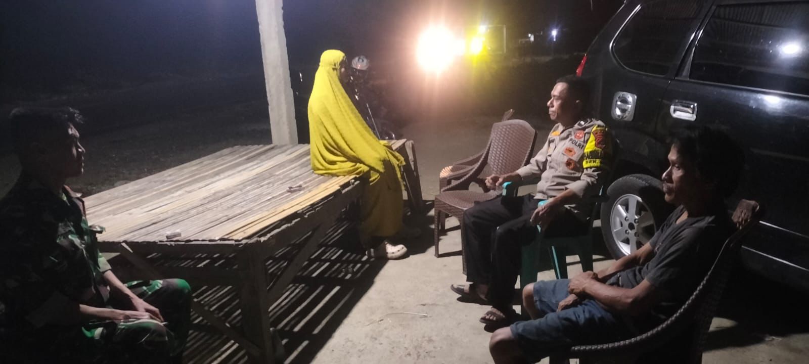 BONE – Manurunge, Usai berbuka puasa, Bhabinkamtibmas Polsek Tanete Riattang, Aiptu Ulpiadi, melaksanakan kegiatan berkeliling di wilayah binaannya untuk menyapa masyarakat dan menyampaikan pesan kamtibmas.