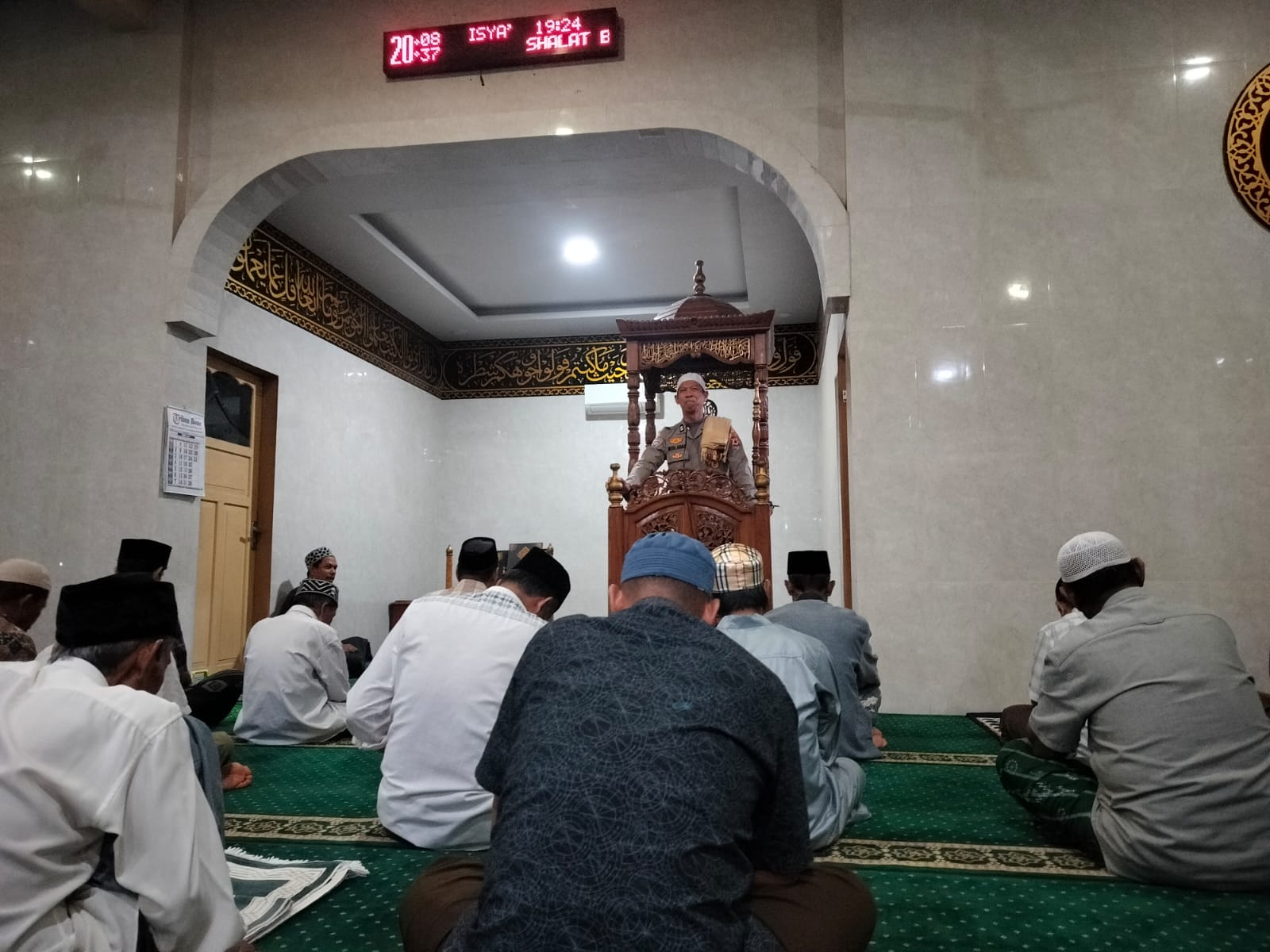 Selain menyampaikan tausiah, AIPTU Muhammad Anas, S.Pd.I juga memberikan himbauan kamtibmas kepada masyarakat agar senantiasa menjaga keamanan dan ketertiban di lingkungan masing-masing. Para jemaah diingatkan untuk tetap waspada terhadap potensi gangguan keamanan serta berperan aktif dalam menjaga situasi yang aman dan kondusif, khususnya pada malam hari selama pelaksanaan ibadah di bulan Ramadhan.