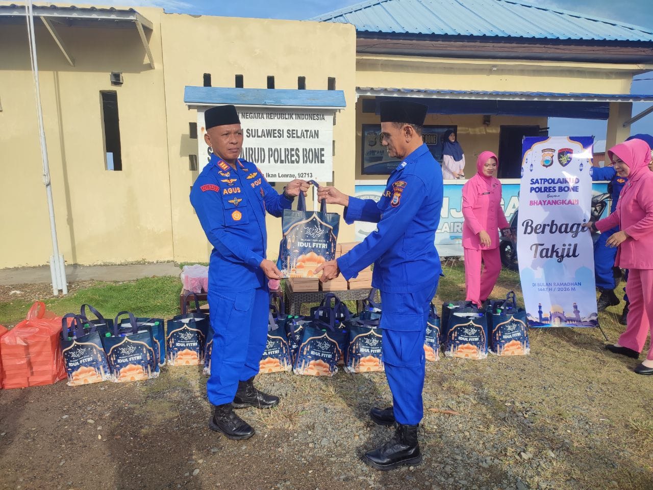 BONE – Bajoe.Jelang momen spesial lebaran menjadi tradisi dengan pemberian parcel sebagai kebahagiaan sekaligus menjalin tali silaturahmi. Seperti yang dilakukan Kasat Polairud Polres Bone Akp Agustang, S.H.,M.Si membagikan secara langsung parcel Idul Fitri 1447 H/2026 kepada anggotanya, Selasa (17/03/2026).