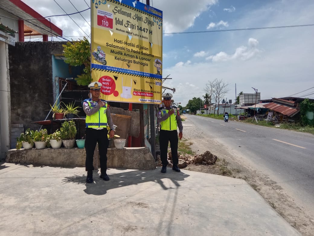 BONE – Satlantas Polres Bone memasang spanduk imbauan keselamatan di sejumlah titik strategis wilayah Kabupaten Bone dalam rangka Operasi Ketupat sebagai langkah preventif untuk meningkatkan disiplin dan kesadaran masyarakat dalam berlalu lintas, Selasa (17/3/2026).
