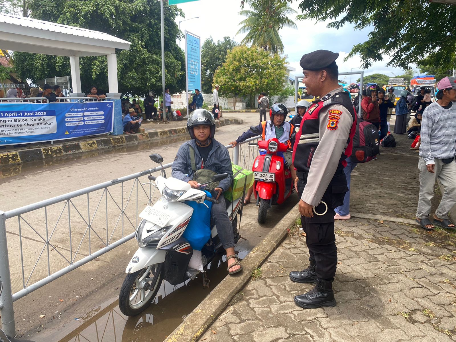 BONE – Bajoe, Beri pelayanan kepada masyarakat pengguna jasa / penumpang yang berada di Pelabuhan Bajoe dan penumpang yang akan berangkat ke Pelabuhan Kolaka Sulawesi Tenggara. Dilaksanakan pengamanan dan pelayanan Oleh Personil. Selasa, ( 31/03/2026 ).