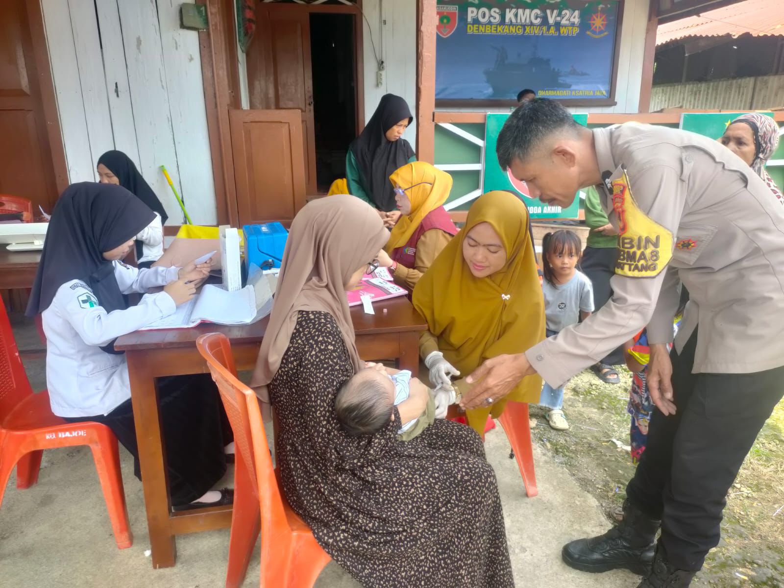 Dalam pendampingannya, Aiptu Baso Halim memberikan arahan dan dorongan kepada orang tua agar rutin membawa anak-anak mereka mengikuti kegiatan Posyandu. Ia juga menekankan pentingnya imunisasi sebagai upaya pencegahan penyakit serta mendukung tumbuh kembang anak secara optimal.