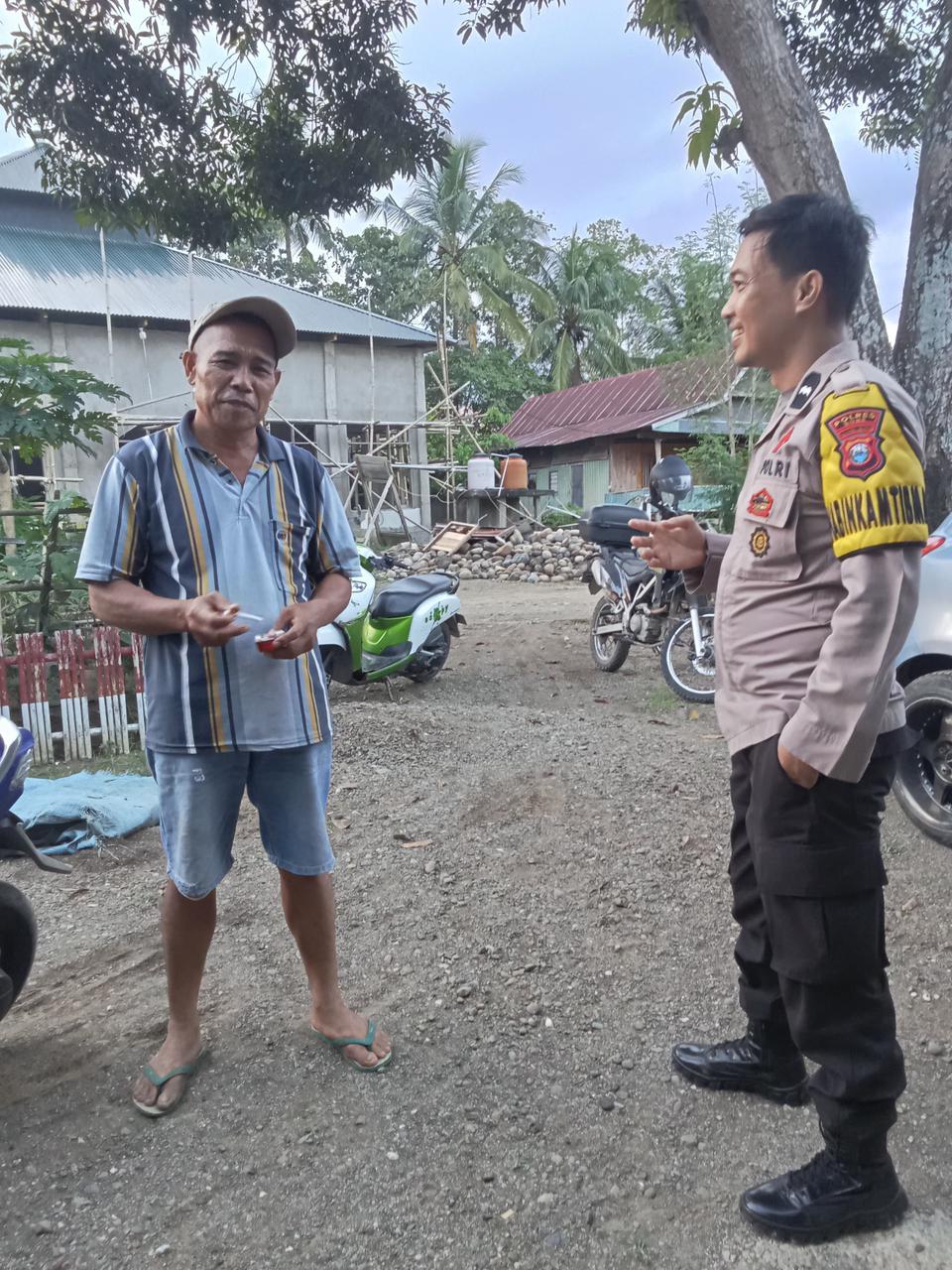Kegiatan tersebut dilakukan dengan mengunjungi langsung warga dan berdialog santai guna mempererat hubungan antara kepolisian dan masyarakat. Dalam kesempatan itu, Aipda Syahrir menyampaikan pesan-pesan kamtibmas agar warga senantiasa menjaga keamanan lingkungan, meningkatkan kewaspadaan terhadap potensi gangguan keamanan, serta menjalin kerjasama yang baik dengan aparat setempat.