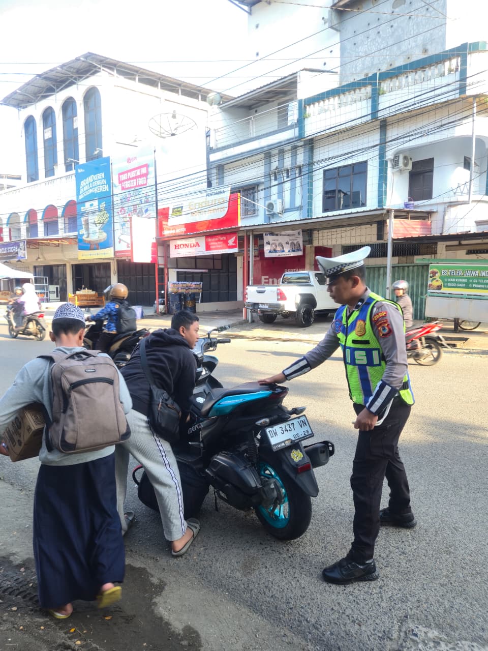 BONE – Dalam menumbuhkan kesadaran diri akan pentingnya memakai helm dalam mengendarai sepeda motor, Personel Sat Lantas Polres Bone yang melaksanakan gatur pagi rutin memberikan imbauan tertib berlalu lintas kepada masyarakat, Senin (20/4/2026).