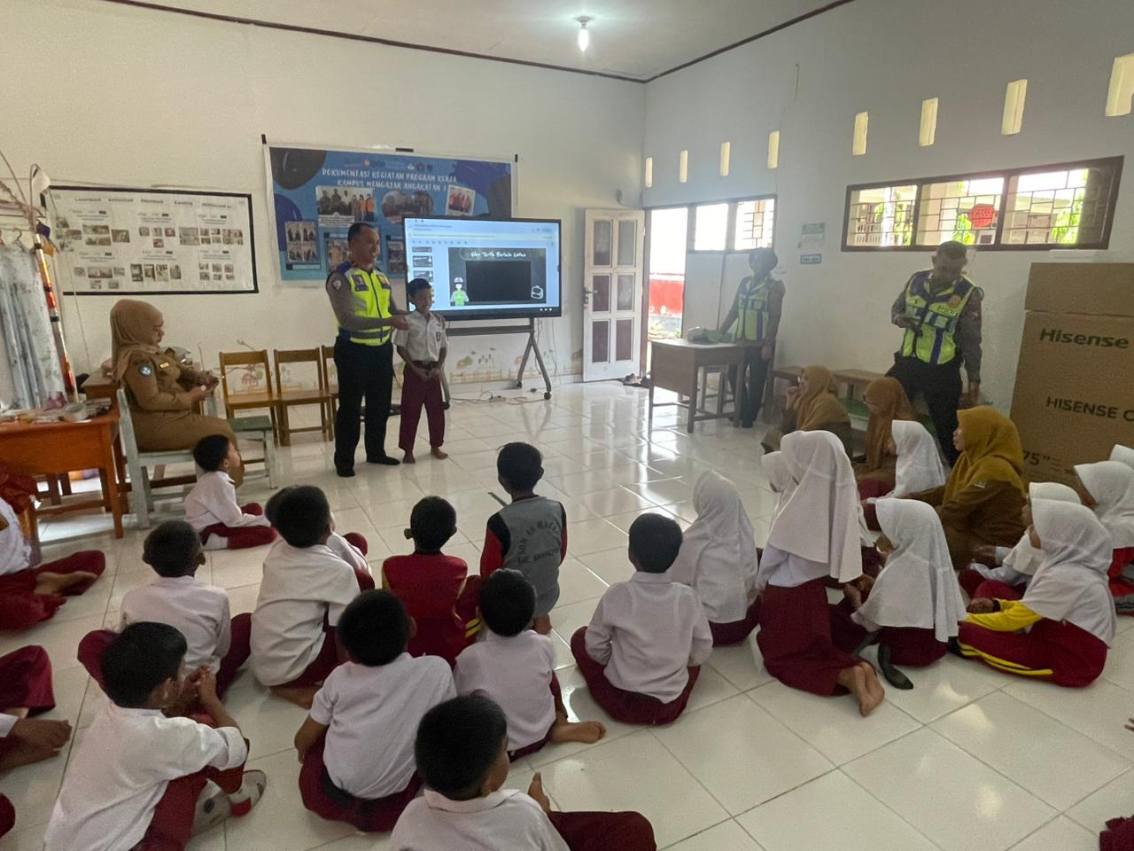 Kanit Kamsel Satlantas Polres Bone Ipda Chandra Wijaya bersama Kaur Mintu Ipda Ishak Yaqub menggelar kegiatan Police Goes to School di Sekolah Dasar Negeri 40 Maccope, Watampone, Kabupaten Bone.