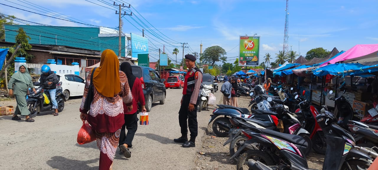 Antisipasi Kemacetan di Pasar Palattae, Kanit Samapta Polsek Kahu Lakukan Pengaturan
