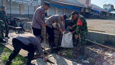 BONE – Personil Polsek Kahu melaksanakan kerja bakti dan Bersihkan Got dipasar di Kelurahan Palattae…