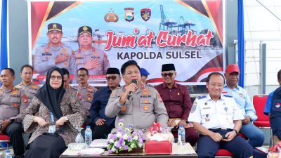 Wakapolda Sulsel Brigjen Pol Chuzaini Patoppoi menggelar kegiatan Jumat Curhat di Kantor Otoritas Pelabuhan Unit…