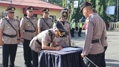 BONE – Sejumlah pejabat utama dan Kapolsek jajaran di Polres Bone melaksanakan serah terima jabatan…